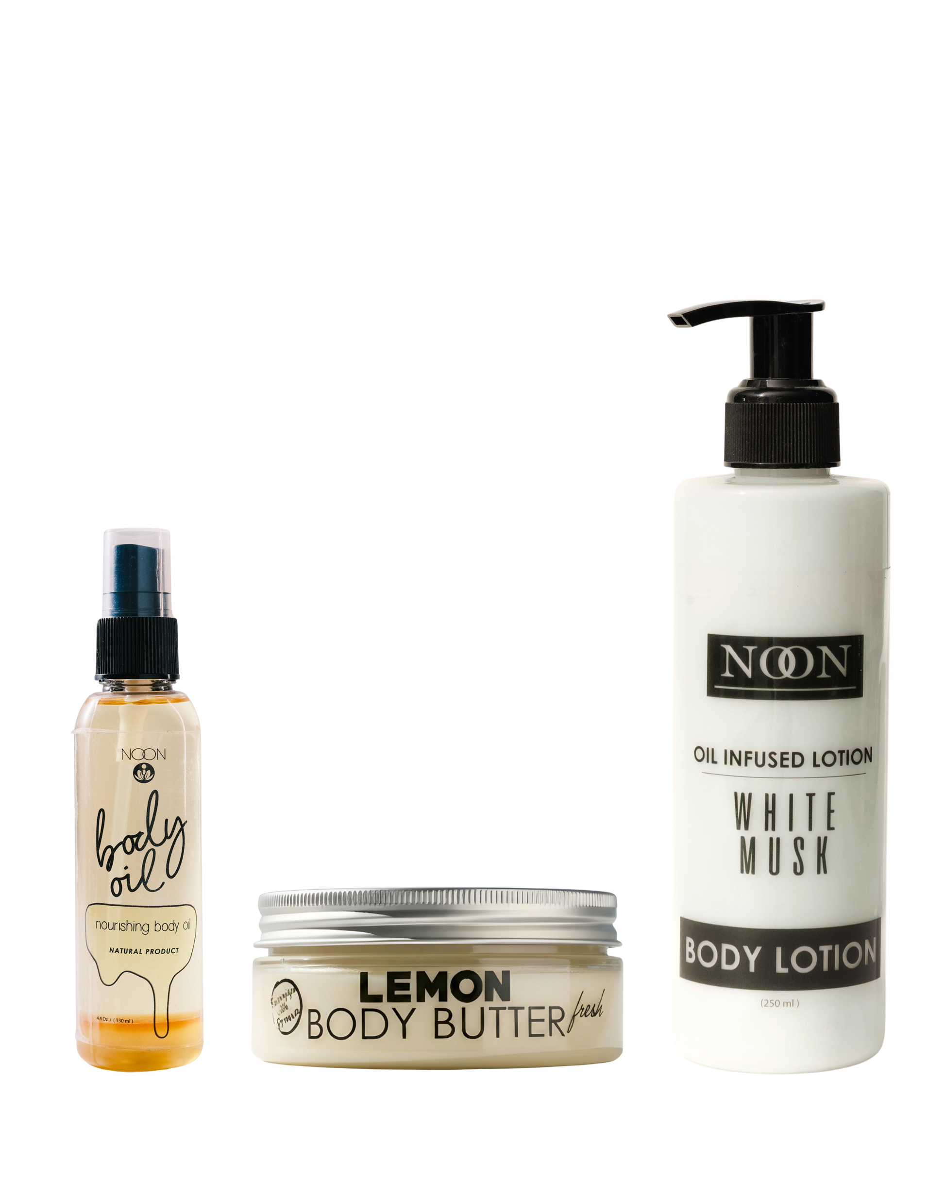 your ultimate pampering set for head-to-toe hydration. This trio combines everything your skin needs to feel soft, nourished, and radiant:
